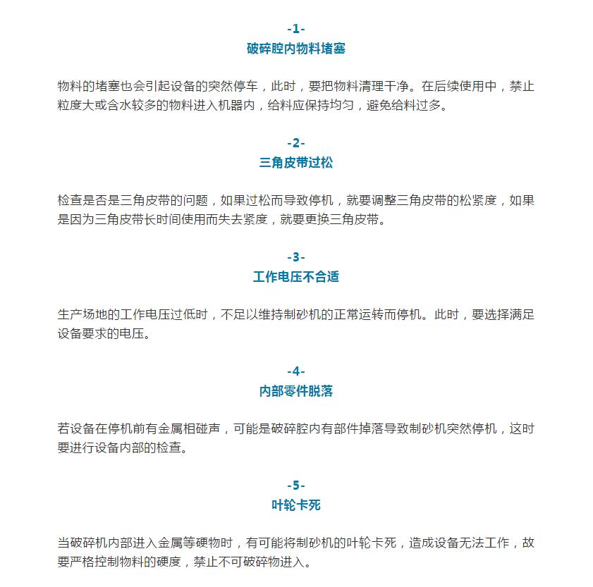 上述7種原因是制砂機突然停機較為常見的情況,下次再遇到不妨先從這幾個方面進行排查,以避免不必要的成本浪費。